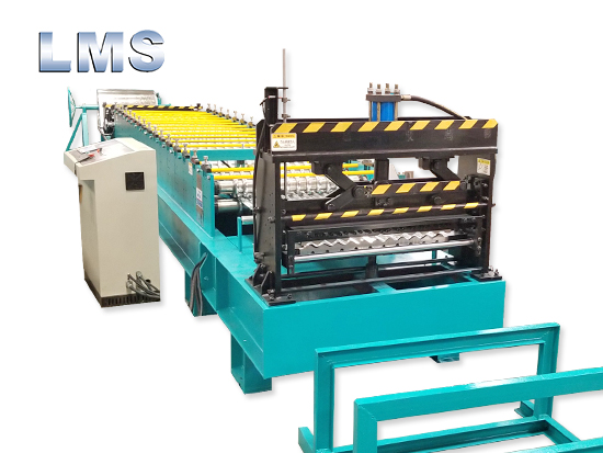 LMS Metal Corrugated Roof Tile Roll Forming Machine is a cost-effective production line with high production efficiency and stable performance. Forming rollers are designed by Germany COPRA software and plated with hard chrome on surface, service life is prolonged. Machine is equipped with PLC & electrical accessories of famous brand, such as MITSUBISHI, SCHNEIDER and OMRON, trustworthy and convenient to operate.